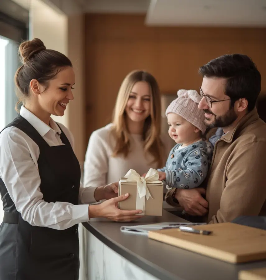 - Coffrets d’accueil à offrir à vos clients : pour valoriser l’accueil des familles et créer un souvenir mémorable.